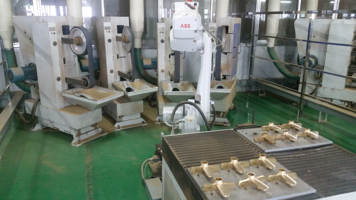 ? ? ? 打磨機器人系統配置四組砂帶機,砂帶機具備自動調速、自動糾偏、自動補償打磨力度等功能,適用于衛浴、電氣、家具、醫療五金工具等行業的打磨作業,并利用機器人的靈巧動作完成異形曲面五金件的打磨作業。