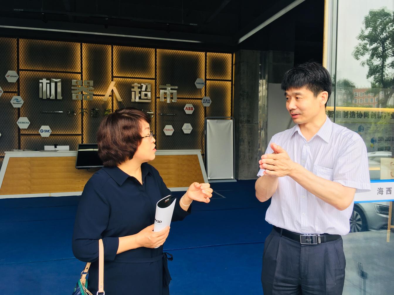 ????? 會(huì)上時(shí)兆峰董事長(zhǎng)對(duì)陳忠輝副市長(zhǎng)一行的到來(lái)表示歡迎,我司董事會(huì)秘書(shū)林嘉楠向領(lǐng)導(dǎo)們?cè)敿?xì)匯報(bào)了我司的發(fā)展概況、系統(tǒng)集成案例,重點(diǎn)介紹了“機(jī)器人超市”暨海西智能制造協(xié)同創(chuàng)新產(chǎn)業(yè)園功能與服務(wù)對(duì)象。