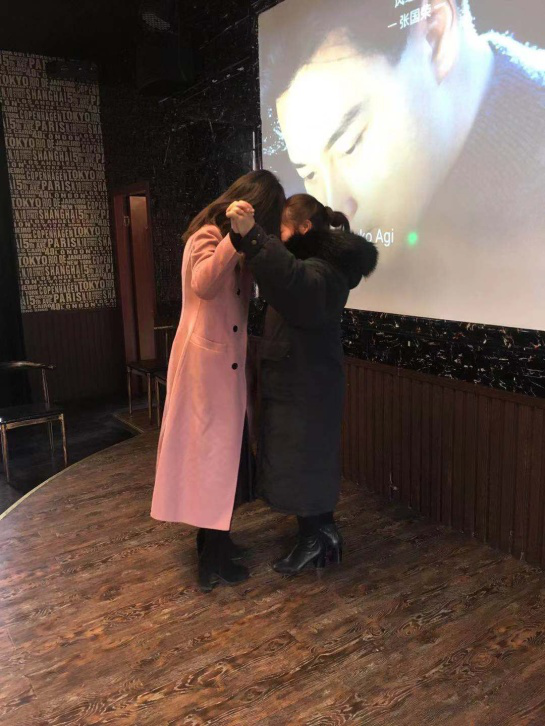 第二組胡靜和李曉芳被表演走貓步,她們有些靦腆和害羞,但是勇氣是可嘉的,認真接受和完成了她們的節目,給大家帶來了驚喜!